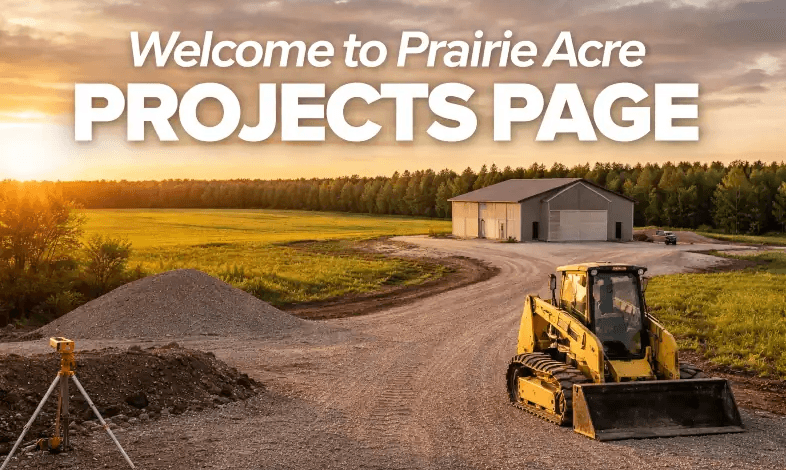 Our work includes driveway construction, garage and shop pads, septic systems, grading, and full acreage development.